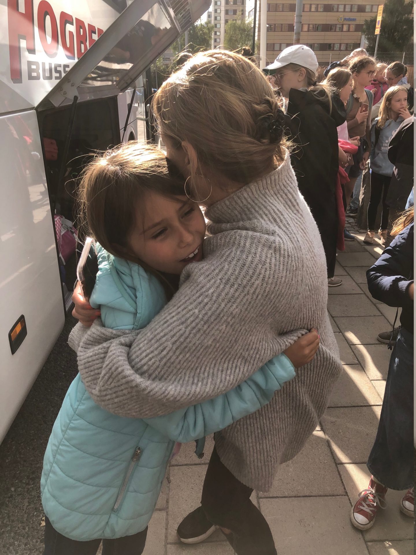 Alla dramatiska föräldrar stod utanför Star Hotell i Sollentuna och vinkade av sina barn. Barnen titta plikttroget ut lite då och då men blev mer och mer fokuserade på vad som hände inne i bussen och mindre på dom tårögda föräldrar utanför.