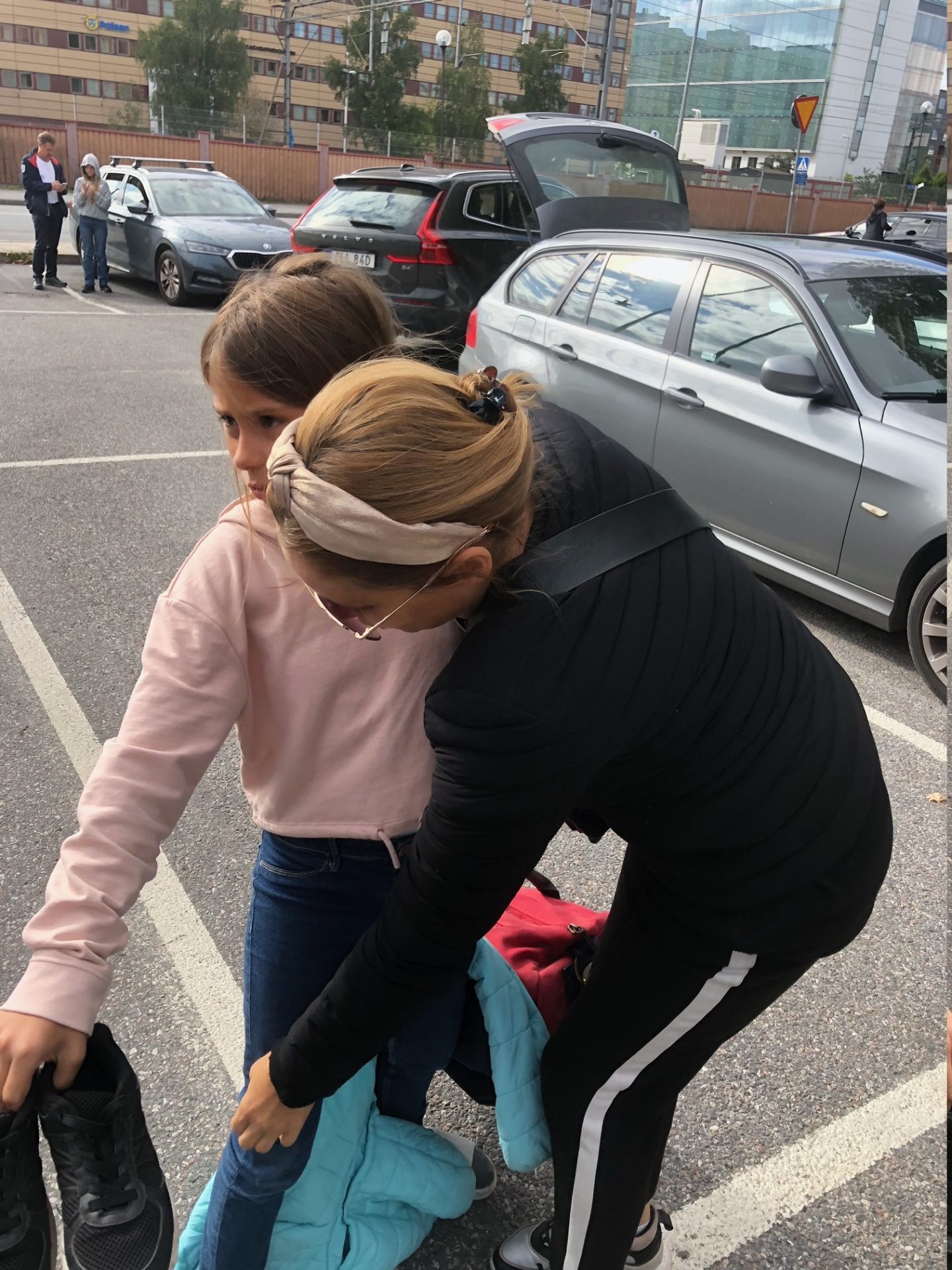 Amina hade packat väskan själv efter packlistan och jag berättade att hennes storasystrar alltid packade med en mamma t-shirt ifall man blir ”längtig” och det var absolut inget för Amina. Noll intresserad av nåt mamma-plagg (så otrevlig).