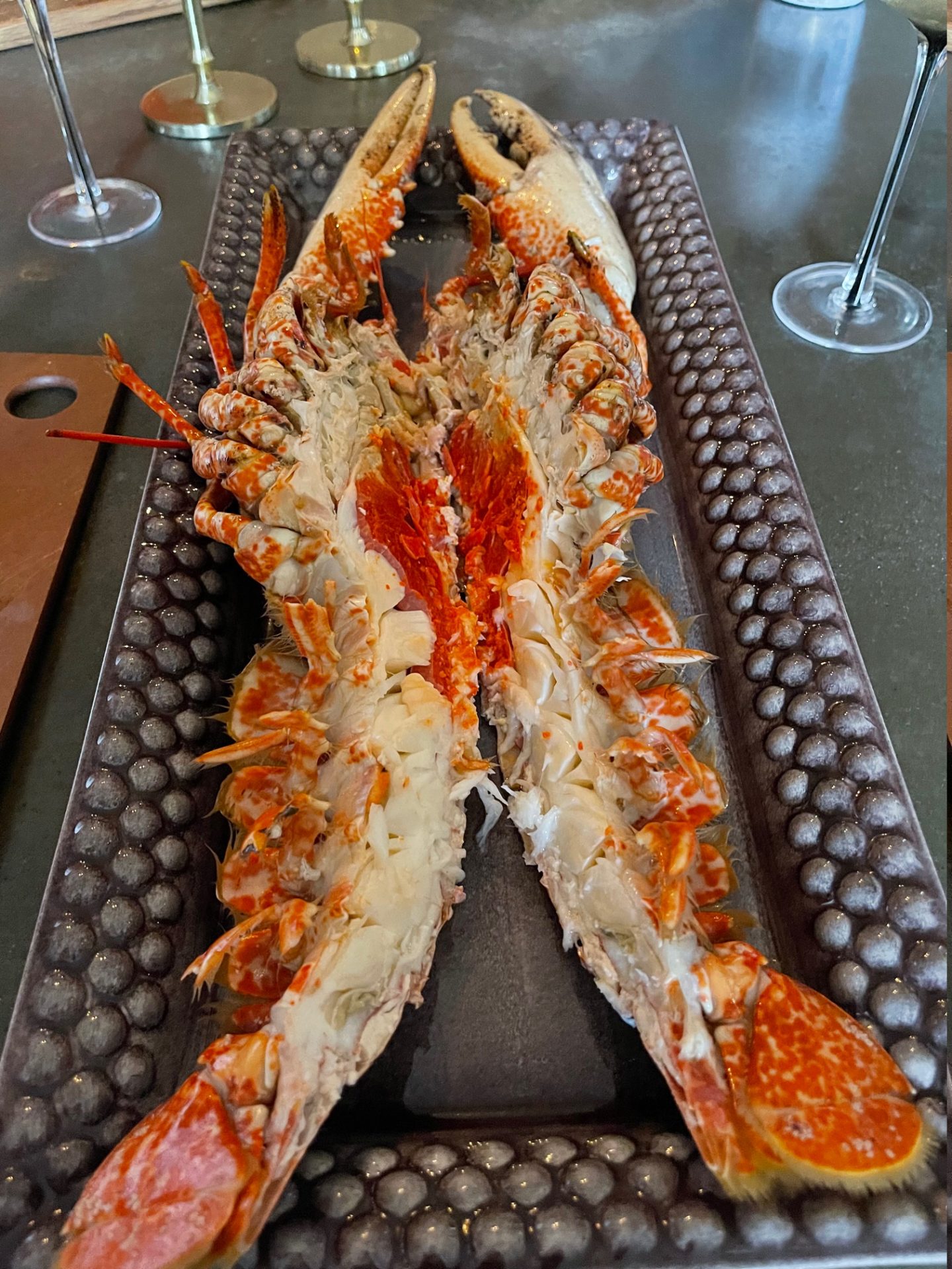 Alexandra som är master chef fick skära bjässarna itu. Jag har aldrig sett så fina humrar och dom var helt otroligt goda.