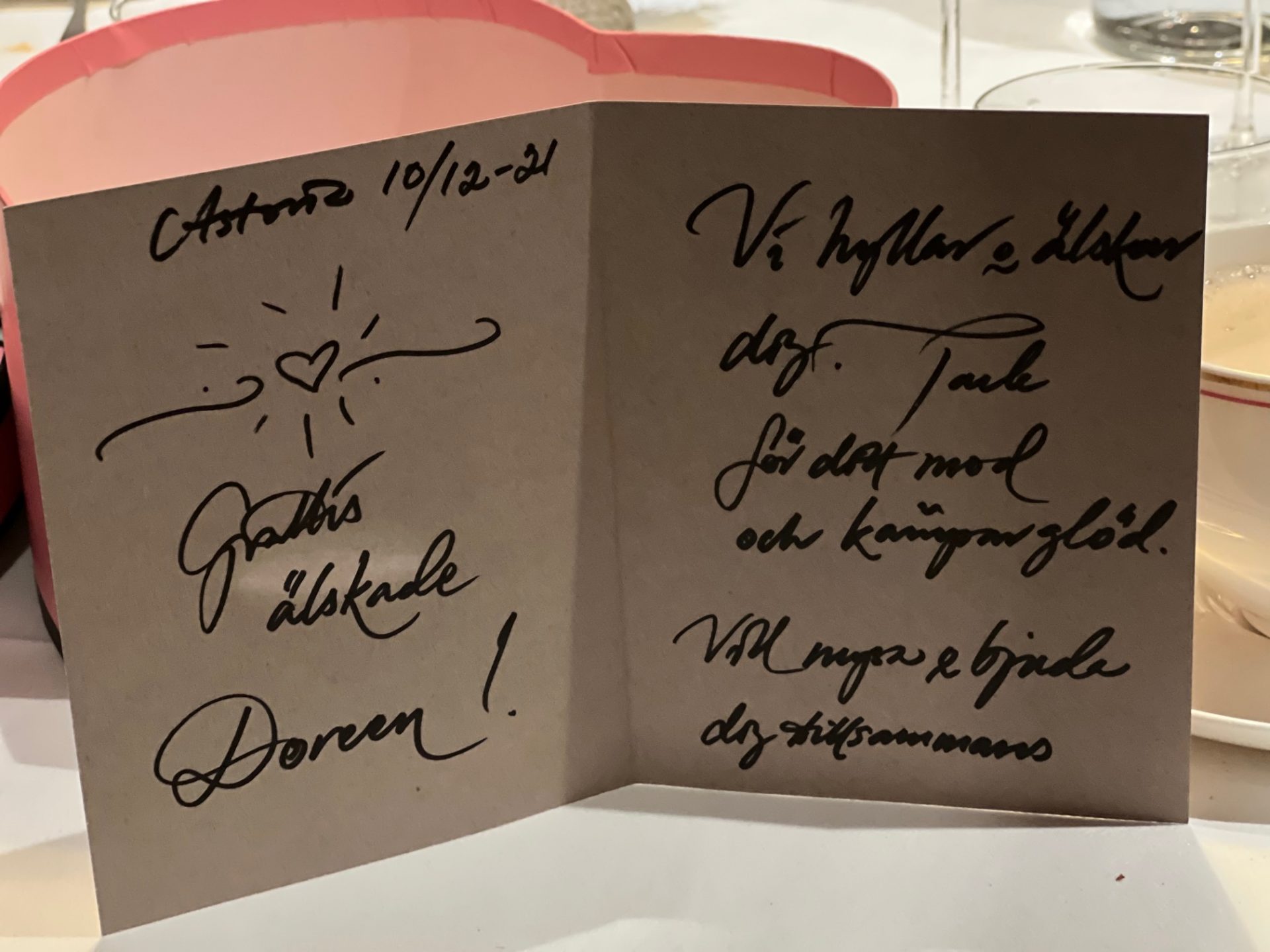I hjärtat låg ett jättefint kort som Carola hade skrivit så fint i. Hon har den vackraste handstilen i hela världen.