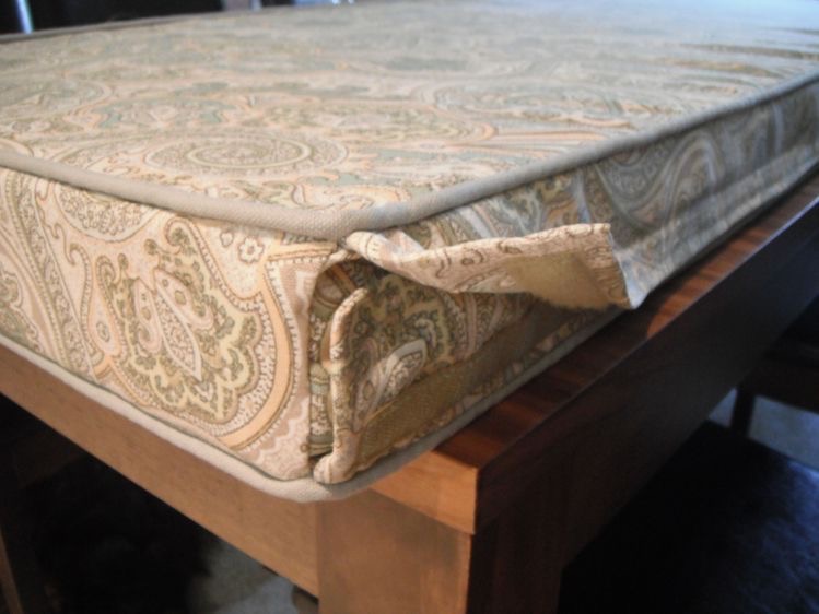 Jag tycker iofs att det är snyggt med madrass i ett stycke men det är inte möjligt för vår del eftersom mittensektionen på sittbänken ska ha förvaring under sittlocken och då måste man enkelt kunna ta bort dynan på just den delen för att kunna lyfta på locket.