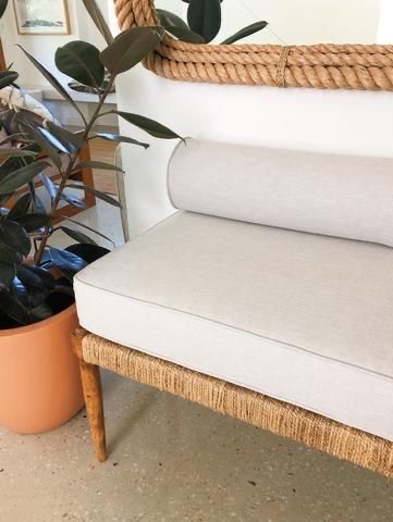 En avgörande detalj för hur snygg sittbänken blir är enligt mig sittdynan. Fört tunna sladdriga dynor gör att jag får Kronbloms-kökssoffa-panik men om det är en måttbeställd välfylld dyna i snyggt tyg så ser det dösnyggt ut. Jag älskar även när sittdynan har en liten keder-kant.